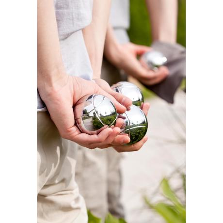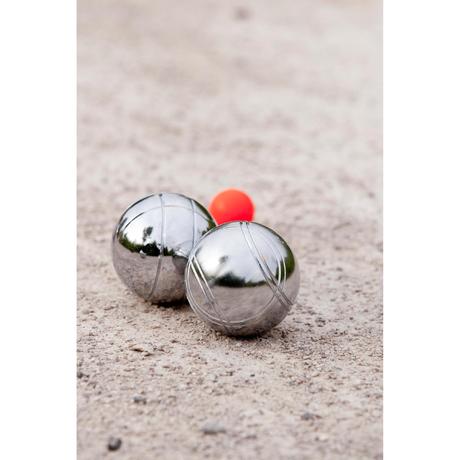 Ce kit comprend 3 boules, un cochonnet et un filet de transport, il n'y a plus qu'à démarrer la partie ! Existe en version lisse ou striée pour reconnaître facilement vos boules sur le terrain.